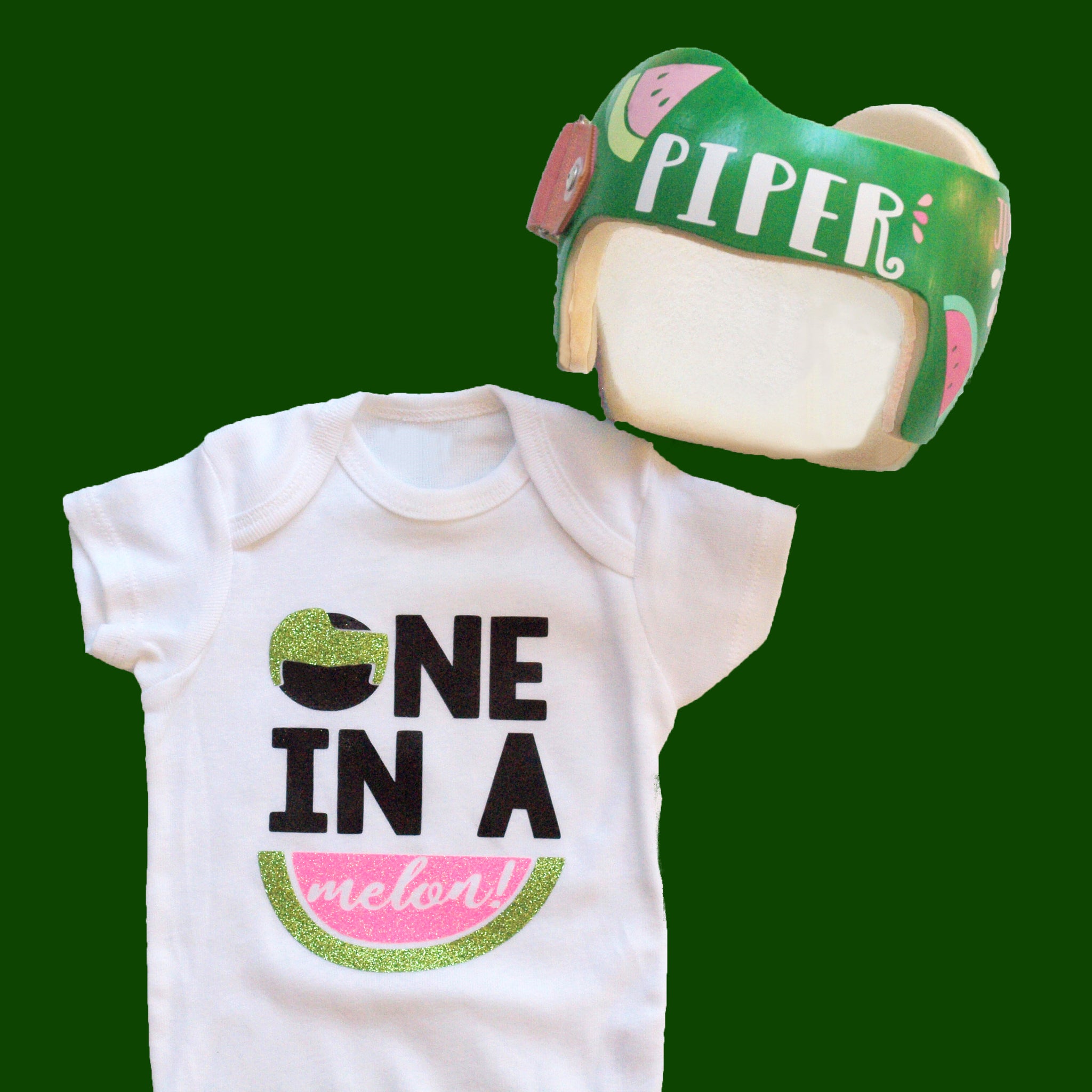 Make it fun with a cranial helmet bow, onesie, helmet graduation sticker, balloons and more!